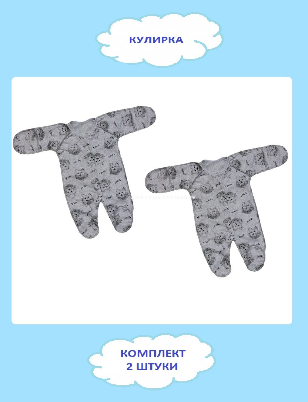 "МоёДитё" комбинезон со швами наружу "Гардения" КК007 "Собачки" серый